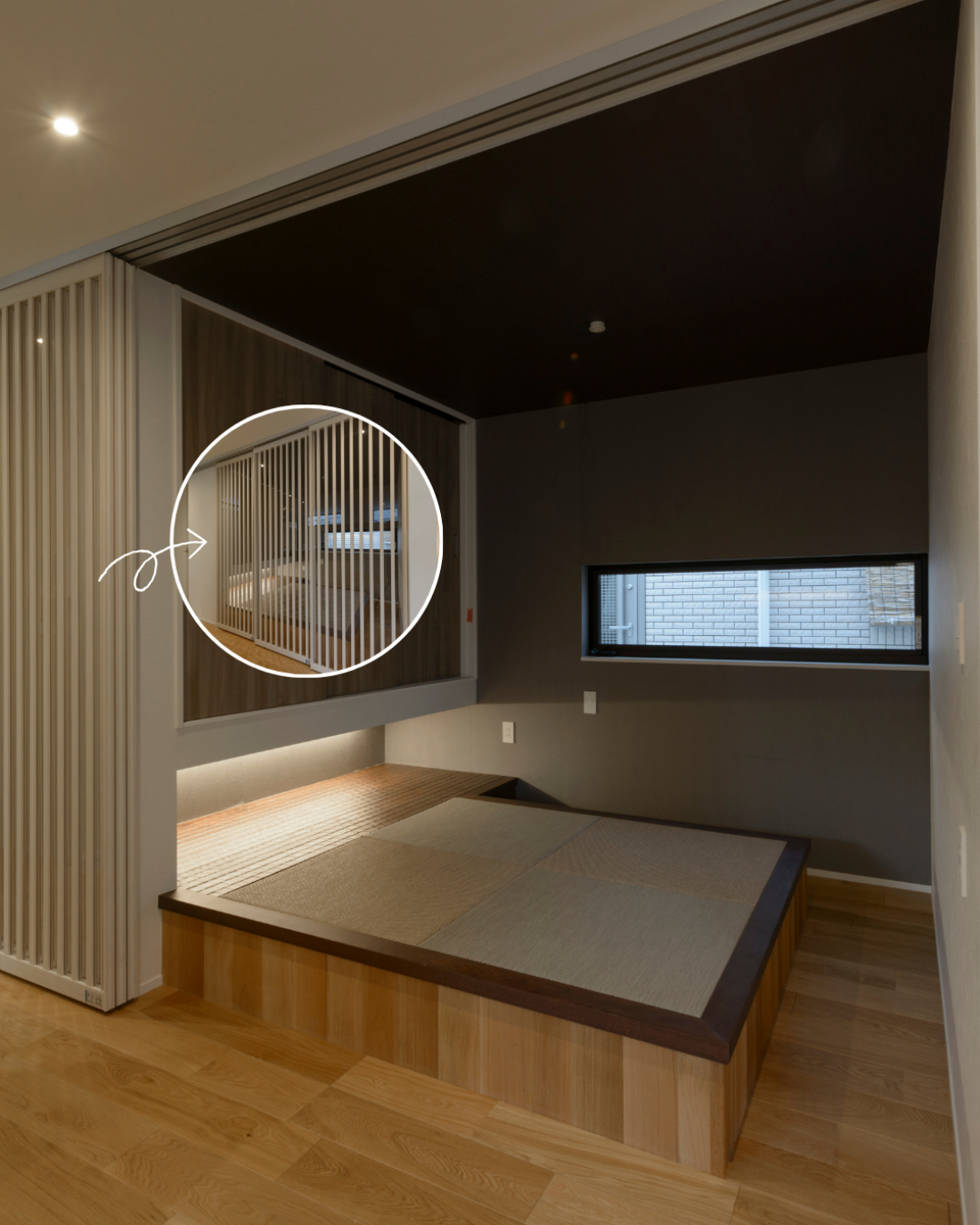 空間の段差や視線の抜けを巧みに使った立体設計で、