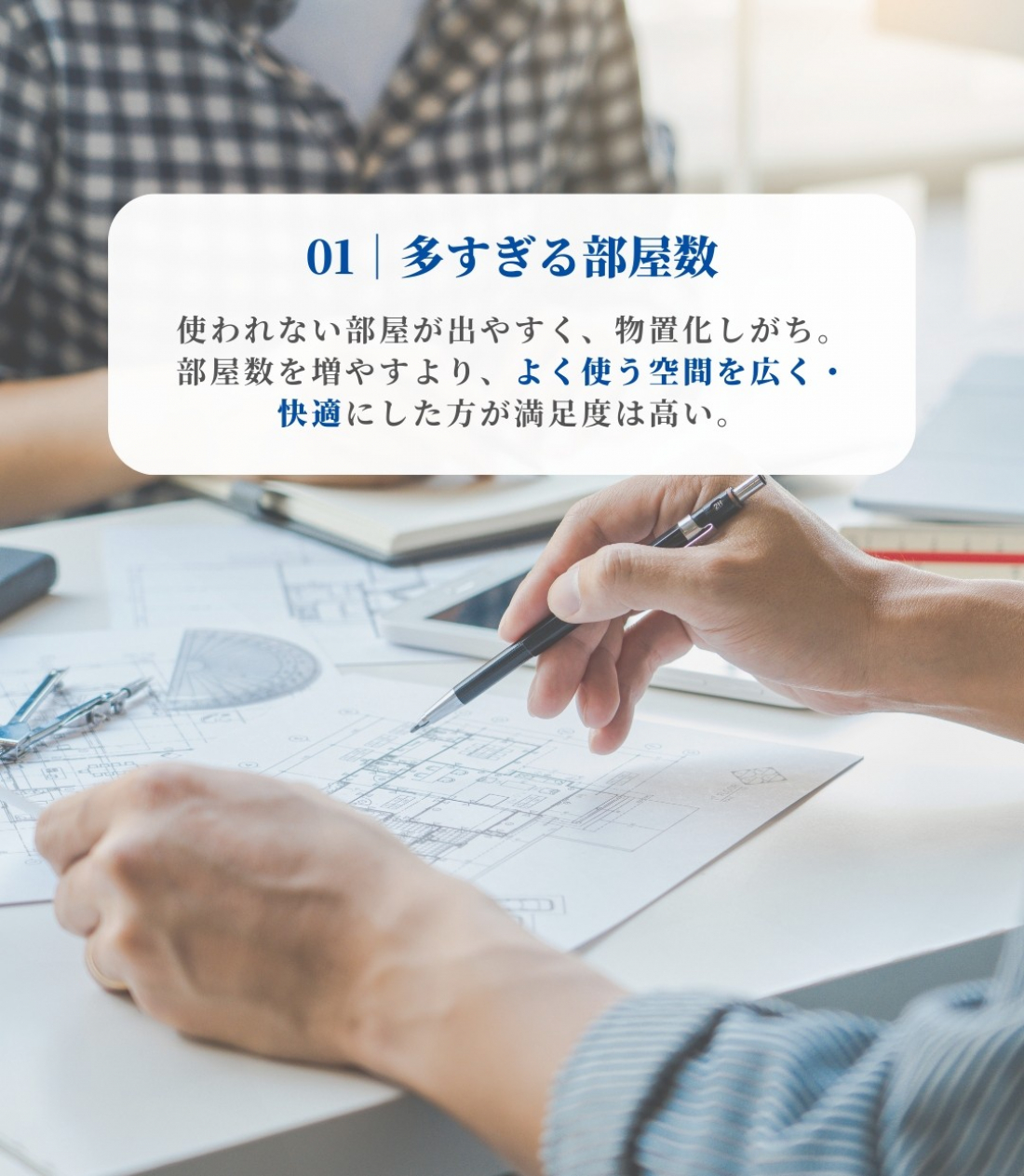 部屋数を増やすより、よく使う空間を広く・快適にした方が満足度は高いです。