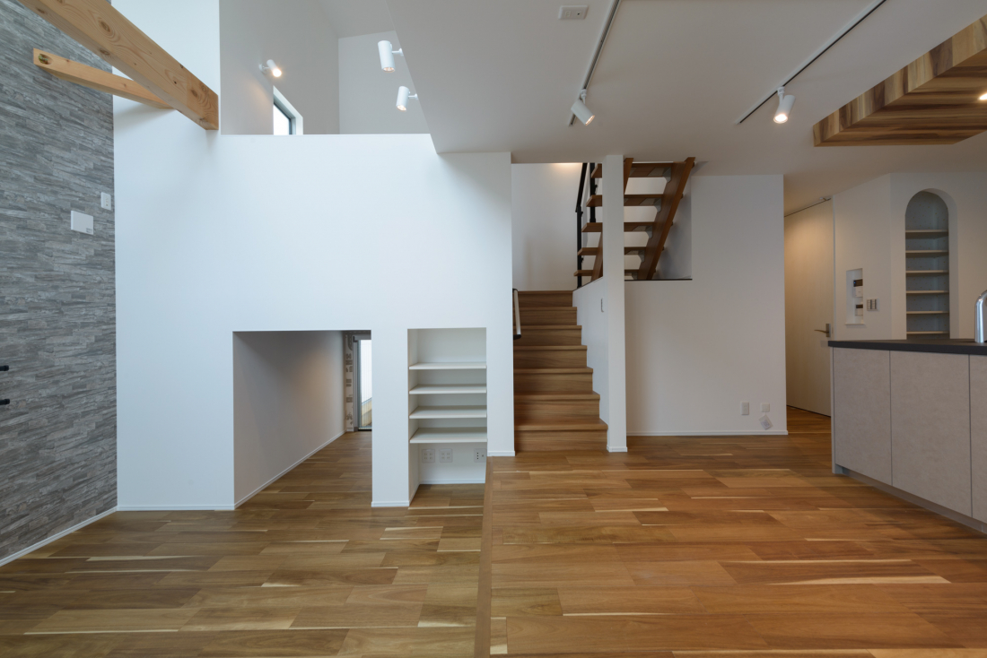 吹き抜け天井の住宅
