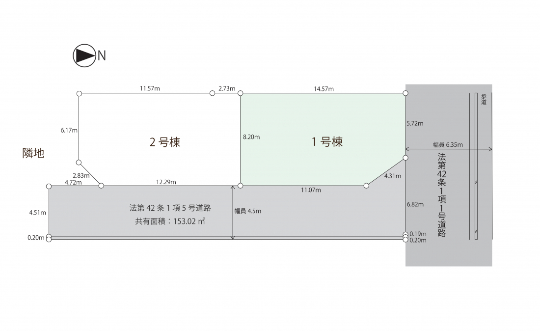 接 道 東側 約15.3m接道・北側 約5.7m接道